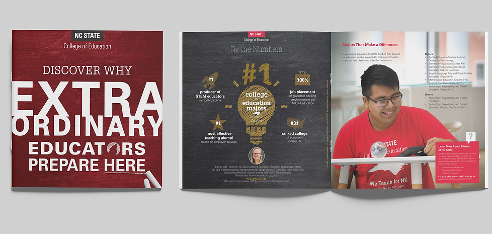 Position the college as the preparer of North Carolina’s best educators and leverage student and alumni voices to highlight the student experience. This booklet highlights the college's undergraduate academic programs, benefits, and opportunities. -